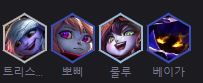 챔피언 : 케넨, 나르, 트리스타나, 뽀삐, 룰루, 베이가