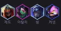 챔피언 : 제드, 아칼리, 쉔, 케넨,