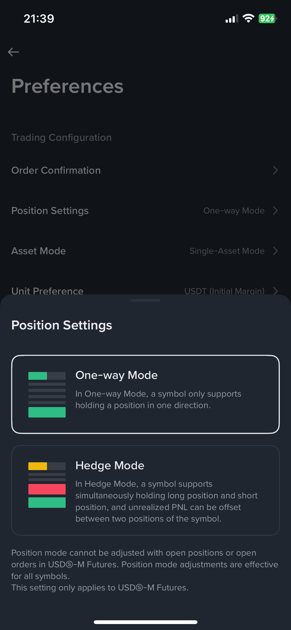 - 참고로 포지션이 잡혀있으면 변경이 안됩니다.